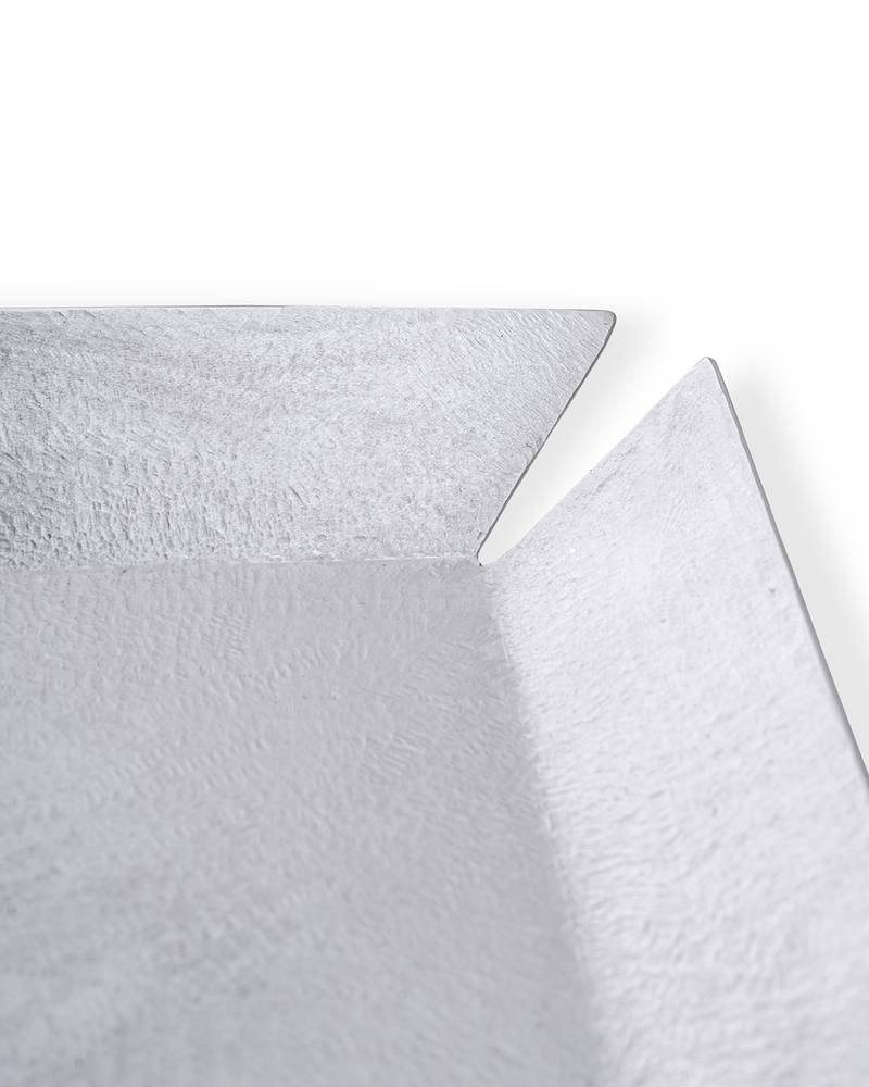 Rediscovering an ancient technique typical of the great tradition of Italian silverware, Mesa's craftsmen now offer this richly textured, unexpectedly luxurious tray. Each tray is handcrafted by a craftsman who manually engraves the surface of the piece in several manual steps.